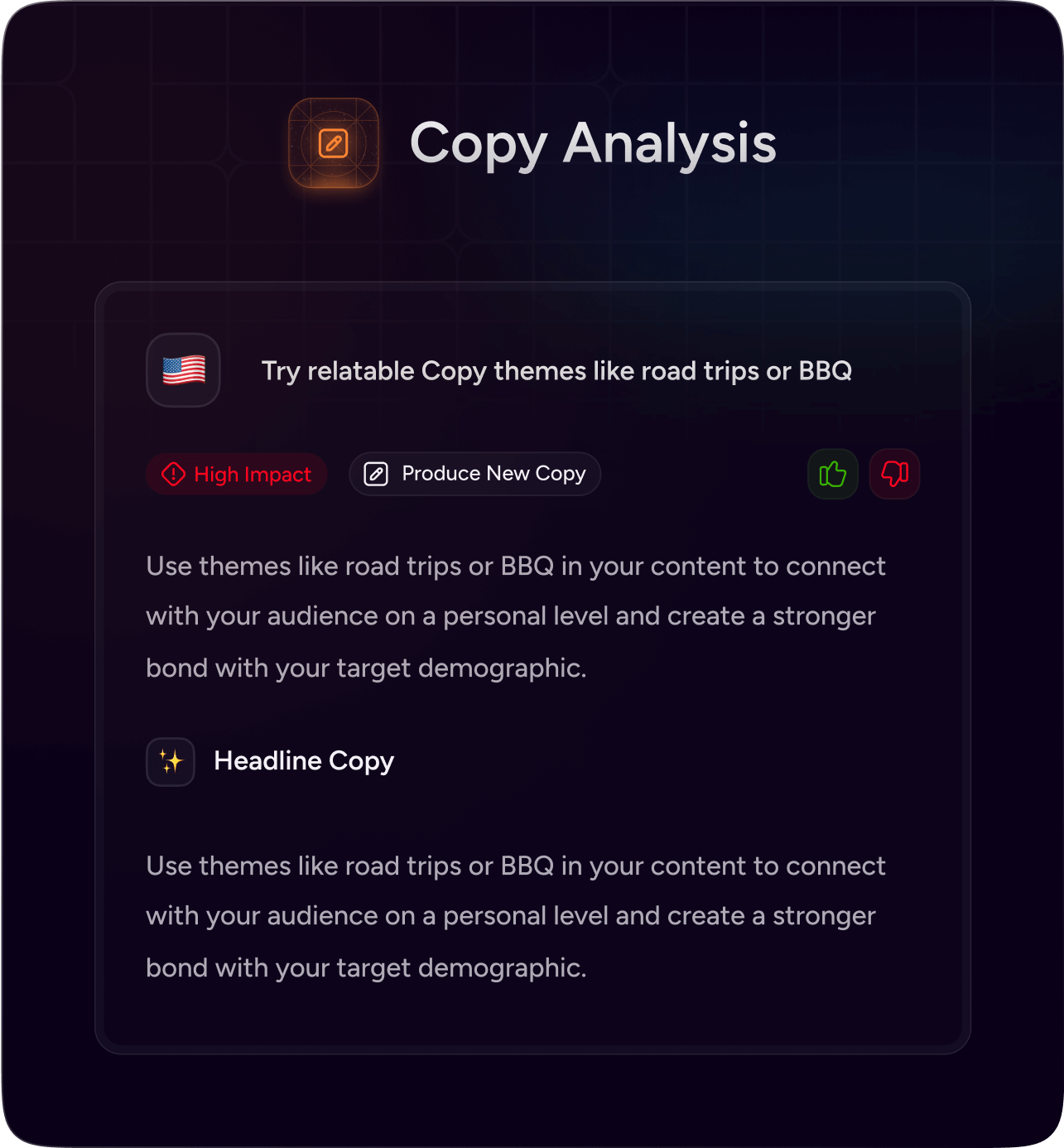 Dive deep into video content with a meticulous frame-by-frame inspection. Every element, from the hook to scenes, objects, text, and even audio nuances, is thoroughly analyzed to ensure you're stopping the scroll and effectively driving conversions.